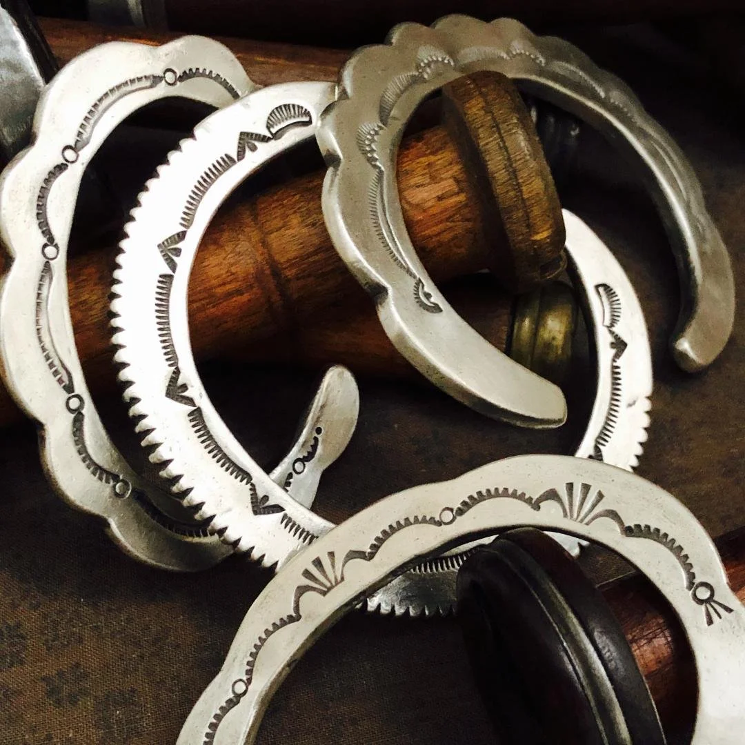 If you own a cuff, it is very important that you know how to put it on and take if off correctly. You should never bend the cuff to get it on. Repeated bending weakens the silver and it will eventually break. If the cuff has stones, the settings will loosen or the stone will crack under the pressure created by bending. If you are unsure of how how to put on and take off your cuff, this video by one of my favorite Diné (Navajo) artists is very informative.